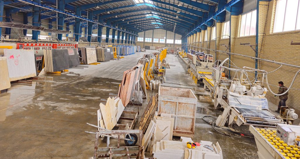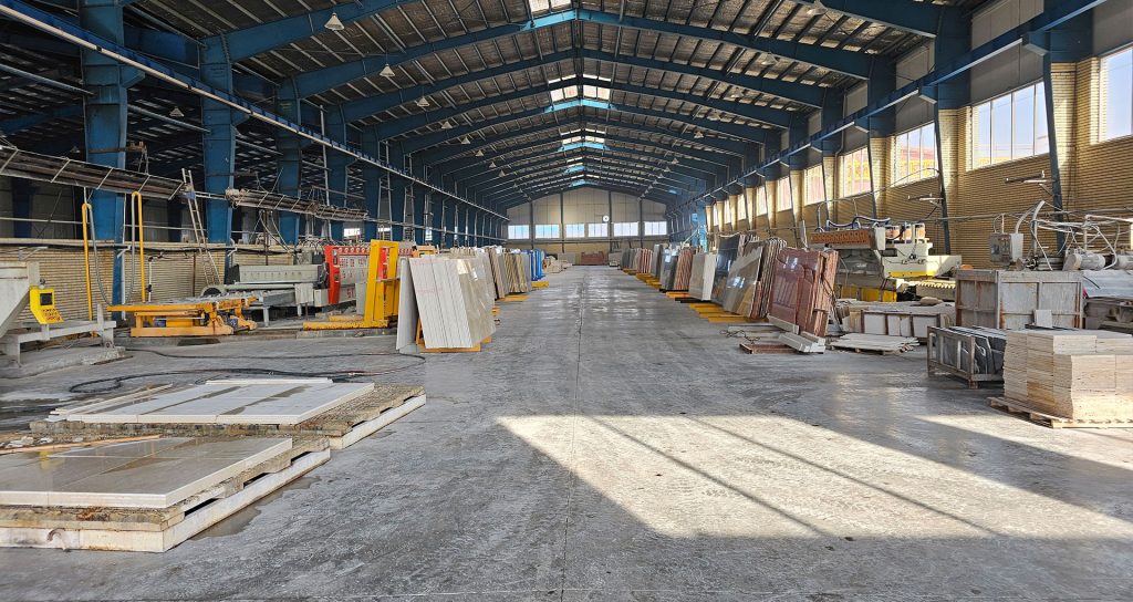 Our main factory is located in Maku, West Azerbaijan Province, Iran. As one of the largest stone processing facilities in the region, it is equipped with advanced machinery and dedicated production lines. The plant includes two block cutters for tile production and a gangsaw for slab processing, supported by two independent production lines that enable us to handle diverse orders simultaneously and efficiently.