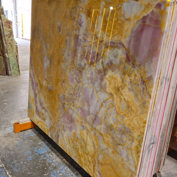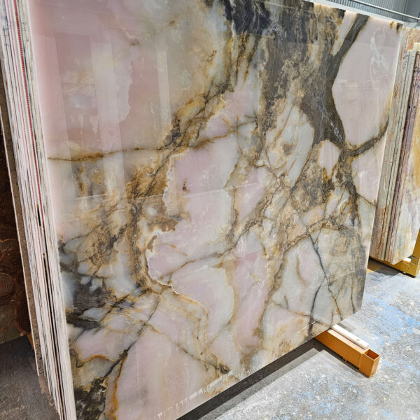 Pink Onyx, processed to achieve its exquisite pink coloration, is one of the most beautiful and valuable types of ornamental stones, renowned for its appealing pink hue and high translucency. Belonging to the chalcedony group, this stone is prized for its unique features, including transparency, stunning color variations, and the ability to be backlit, making it a preferred choice for luxurious architectural and interior design projects.